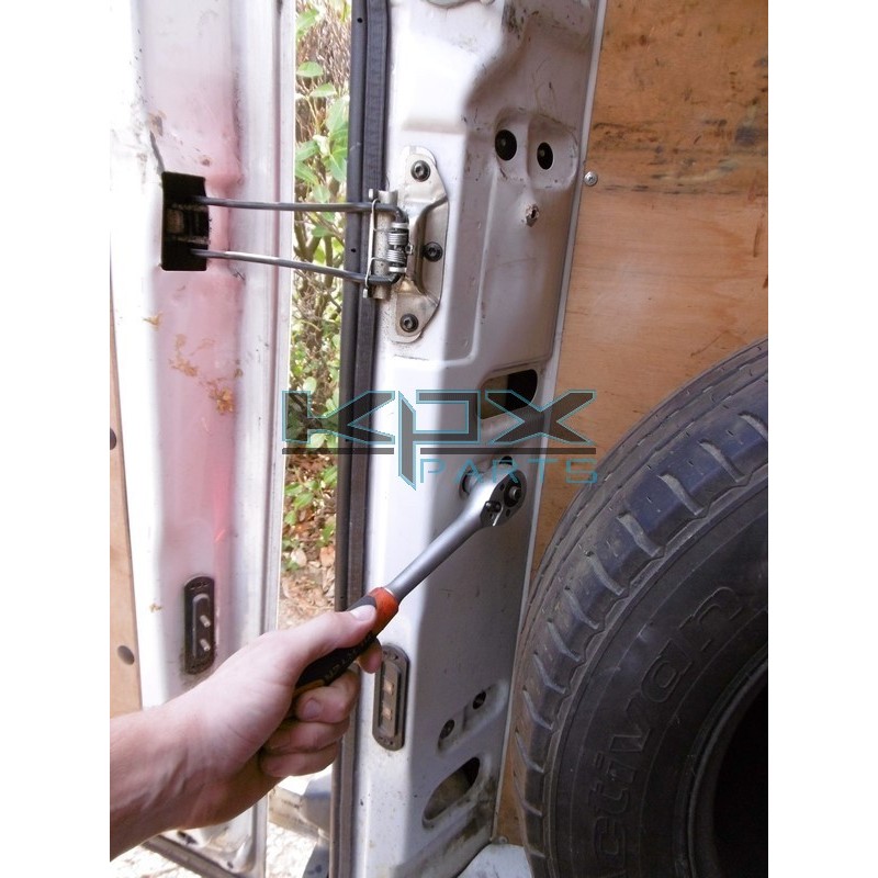 1°) Wewnątrz nadwozia, za światłem, odkręćśruba odkręć 6 nakrętek za pomocą klucza zapadkowego i tuleja 10 mm